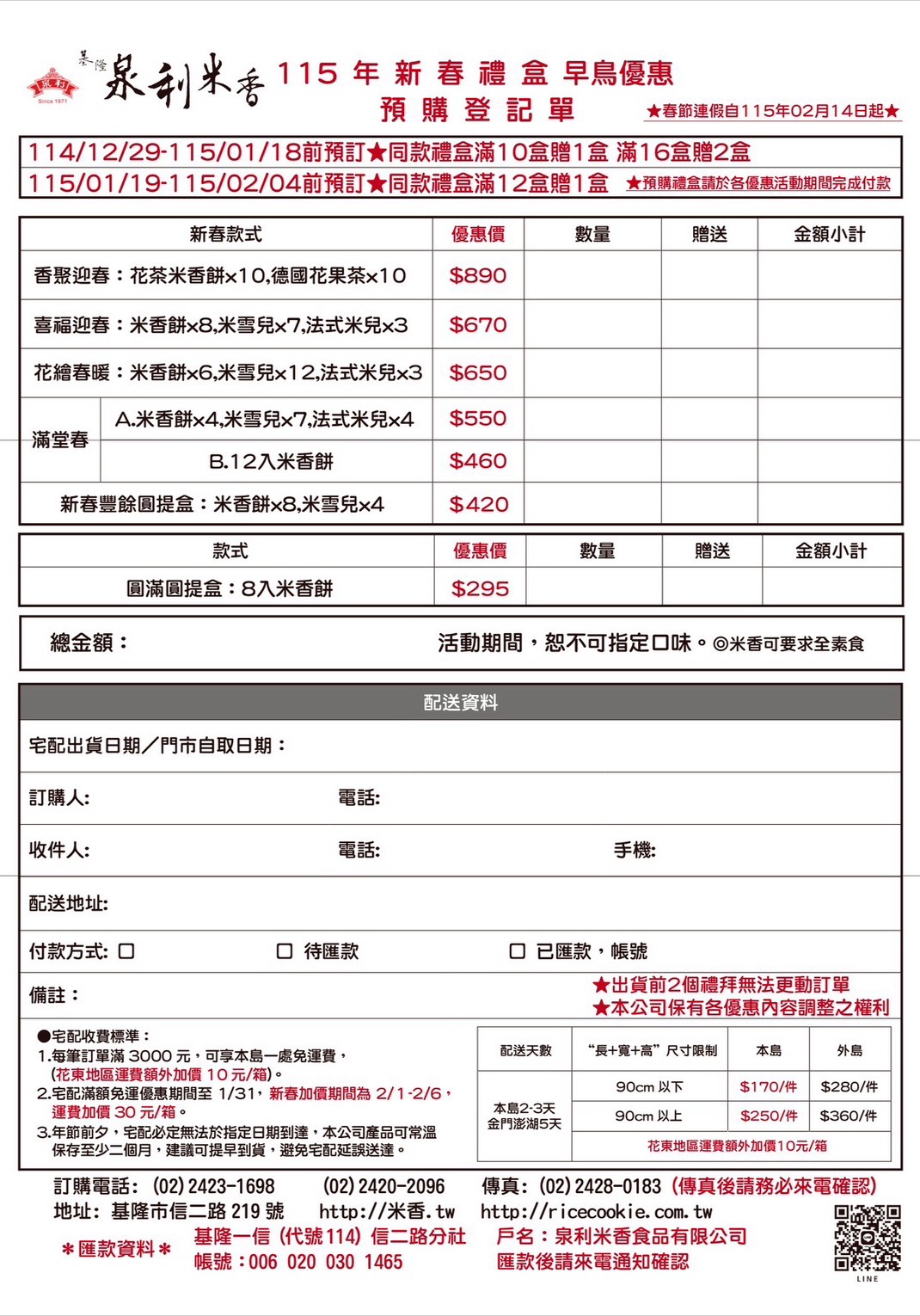 115年春節早鳥訂購單下載114/12/29-115/01/18前預訂★同款禮盒滿10盒贈1盒 滿16盒贈2盒